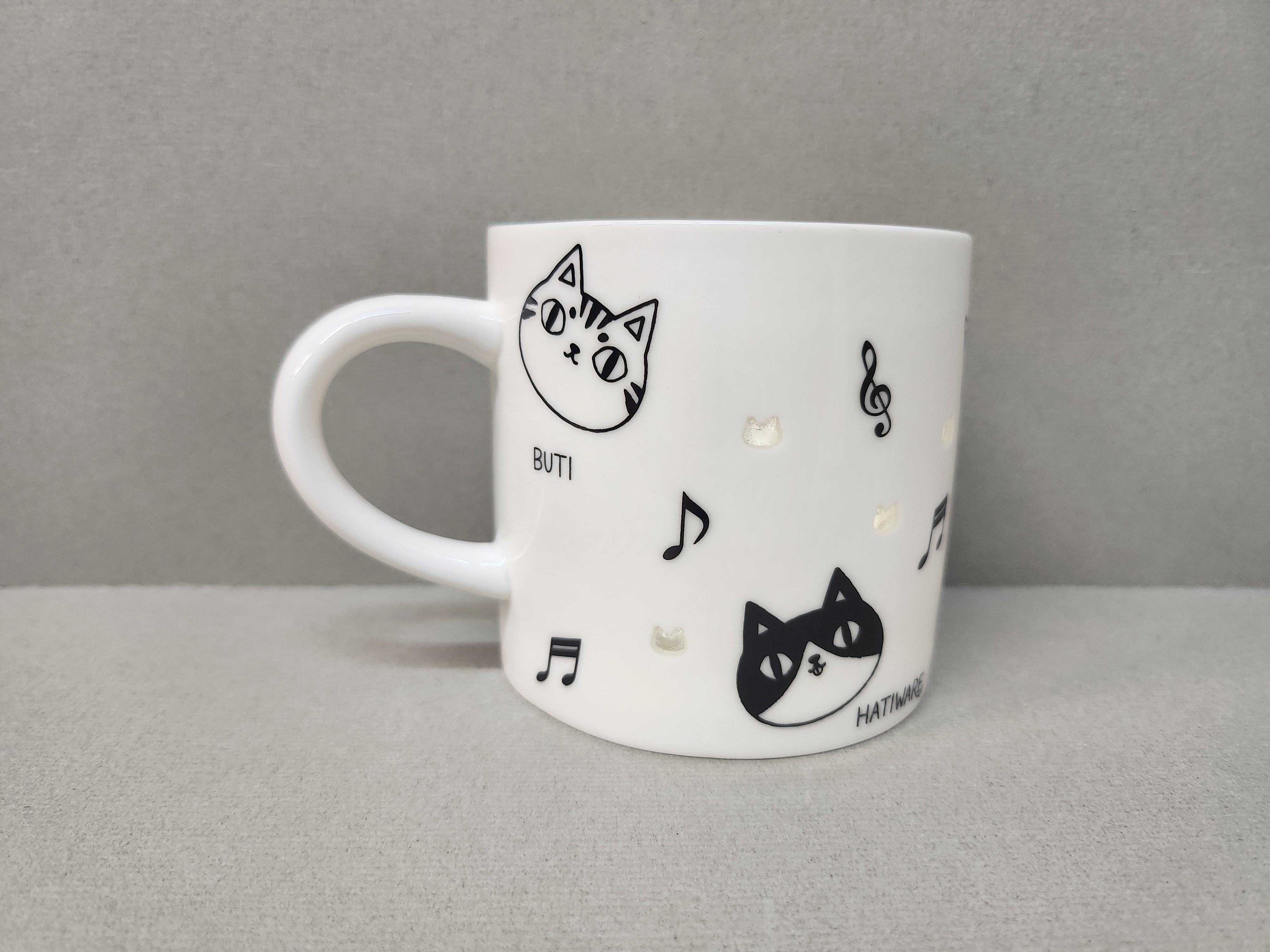 黑白色貓有透明貓頭印耳杯